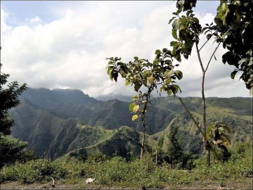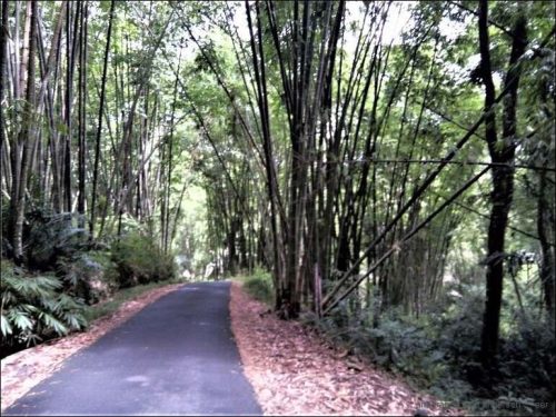 Ganz selten führen Brücken über die Gräben, welche das Wasser in die Berghänge gerissen hat. Also muss jeder Falt im Abhang ausgefahren werden. Übrigens, Grünzeug auf der Strasse bedeutet nicht, dass ‘Ramseiers grasen gegangen sind’. Die Gräser, Zweige, Äste sind Pannendreiecke; – also aufgepasst und Vorsicht. Wir fahren durch dichten Wald, über Kreten und Runsen; – später fast nur noch durch Bambuswälder.