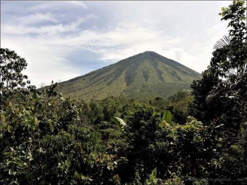 Indonesien ist das Land der Feuer und Farben. Ein Land, so bunt wie man es sich nur vorstellen kann. Aber bestimmt brennt auf jedem Grundstück ein Feuer. Schliesslich muss der Plastik – Kehricht ja verbrannt werden. Und wem das noch nicht genug ist, für den brennen noch all die Vulkane. Zehn vor neun sind wir wieder auf Achse. Wir sind immer noch auf dem Weg Richtung Ende. Der Weg führt in absolut aberwitzigen Kurven den Berghängen entlang.