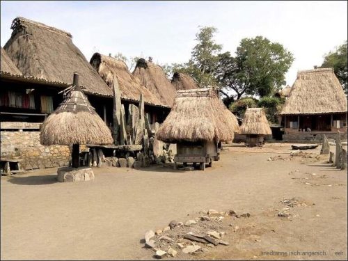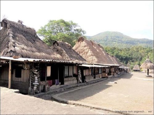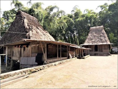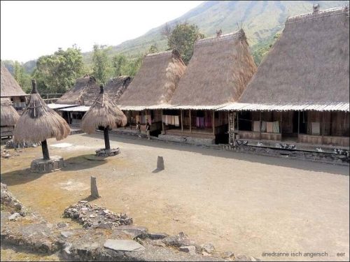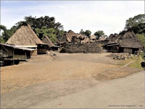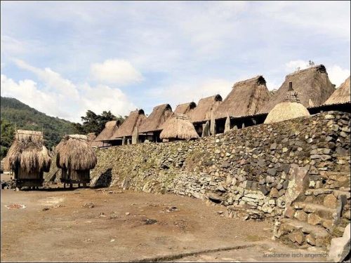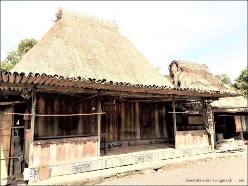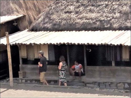 Und übrigens hat es auch Grünzeug auf der Strasse. Um zwölf sind wir in Ubeduolo und essen da bei einer Chinesin zu Mittag. Nach einer kleinen Wanderung durch Läden, auf der Suche nach Benötigtem, fahren wir wieder weiter. Wir besuchen am Nachmittag ein traditionelles Dorf, Bena, das bekannt ist für traditionelle Webereien. Die Architektur der Bauten ist beeindruckend.