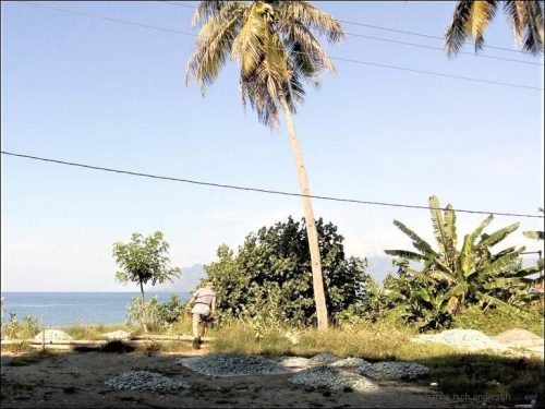 In der Schweiz werden farbige Steine recht teuer gehandelt. Niemand macht sich Gedanken, woher die stammen. In Indonesien, auf Flores, am blue stone beach gibt es schöne, blaugrüne Steine. Nichts Besonderes, einfach farbige Kiesel. Die arme, lokale Bevölkerung lebt davon, diese Steine am Strand zu sammeln und sortiert nach Grösse und Güte für wenig Geld zu verkaufen
