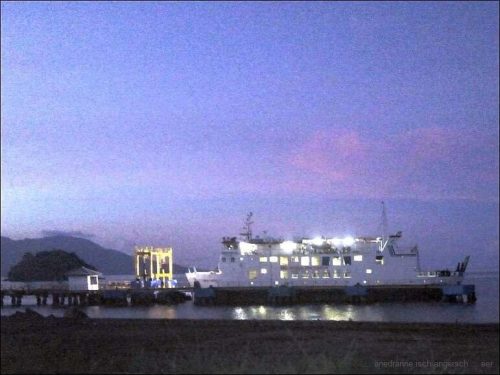 Hier in der Nähe übernachten wir. Die Fährstation liegt unmittelbar vor uns.