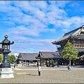 Das grösste Holzgebäude der Welt? Das behoupte si wenigschtens über dä Tämpel da. Higashi Hongan-ji heisst er u isch i de achzähnünzger Jahr nöi ufb’boue worde. Der ursprünglech Tämpel isch ab’brönnt u de heig me ne genau glych u wieder us Holz boue. Ds Holz heig me im Winter mit Schlitte us de Bärge g’reicht. D Froue heige d Haar gah für drus Seili z mache um die Boumstämm chönne z transportiere… Nu de, eimposante Bou uf jede Fall.