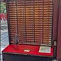 Mer b’sueche e Buddhistische Tämpel, der Sensoji Asakusa-Schrein. Idrücklech, aber o bedänklech, wil ja o d Buddhische chöi Mönsche usgränze. Vor u im Tämpel chame zuekünftigs Glück choufe. I re Blächbüchse het es Holzstäbli wo me nach em Obolus eis cha zu me Löchli useschüttle. Dert isch es Nümmerli druffe u im entsprächende Schublädli isch de d Wyssägig für Glück i der Liebi, i der Familie, im B’ruef usw. — Ja irgendwie muess die Chose finanziert wärde, Chilchestüür git es nid.