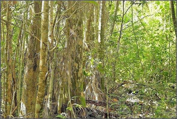 I choufe hie no Wasser, u de geit es los. Über ne ehemalige Pflanzwäg loufe mer i Wald iche. Scho glii zeigt er is Pflanze u Tier, wo n i vielfach nume us em Fernseh kenne. Teils si d Pflanze daheim o Zimmerpflanze i Töpf: Orchidee, Mimose, spezielli Farn wo wie Plastik sii, Tulpeböim in gälb, wo iheimisch sii (die rote si afrikanisch), die orange si de es G’misch. Teakböim, Manga- u Mangoböim, Tourischteböim mit roter Rinde (will d Tourischte vergässe, Sunnecreme i z ribe,) aber de o kubanischi Vanillepflanze.