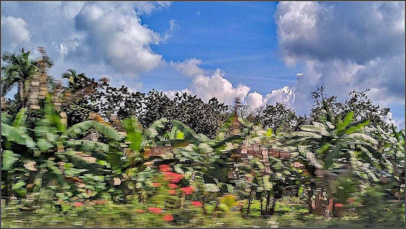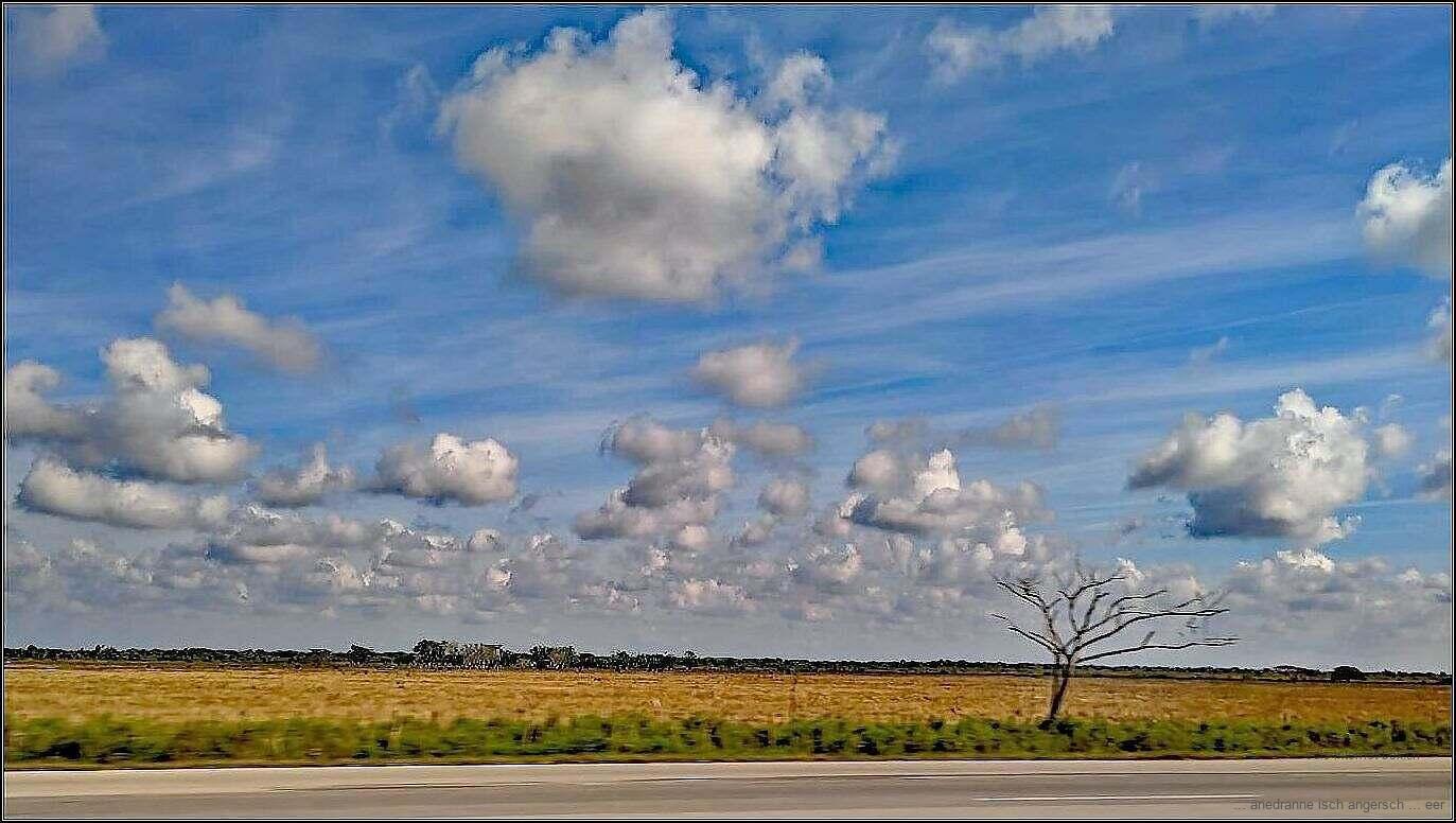 D Fahrt geit mehrheitlech über Outostrasse u es isch e längi Fahrt. Vo der Landschaft g’seh n ig weni. Zytewys het es Fälder, mängisch düecht mi o es sig wie Steppe, oder Tundra, oder so. Gäge ds Meer zue git es Zuckerrohrgebiet.