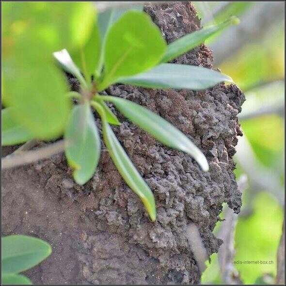 Vo obe verzweige d Würze wit obe vom Stamm wäg u unger chöme die de wieder der Bode düruf. (Luftwurzle) All das, wäg däm cheibe Salzwasser.
