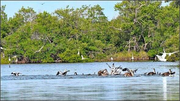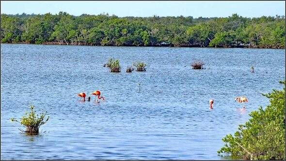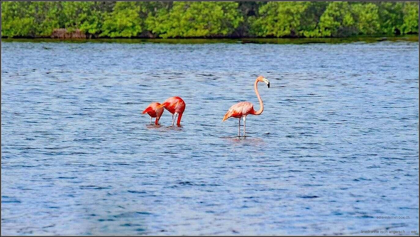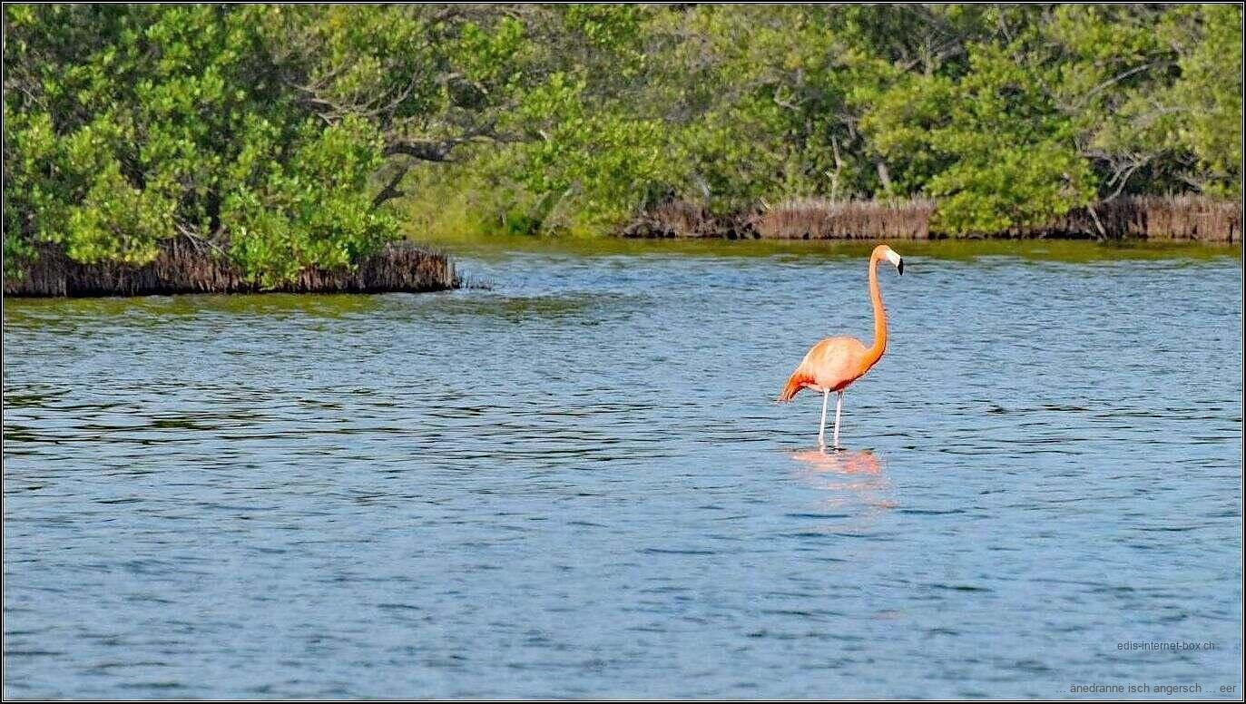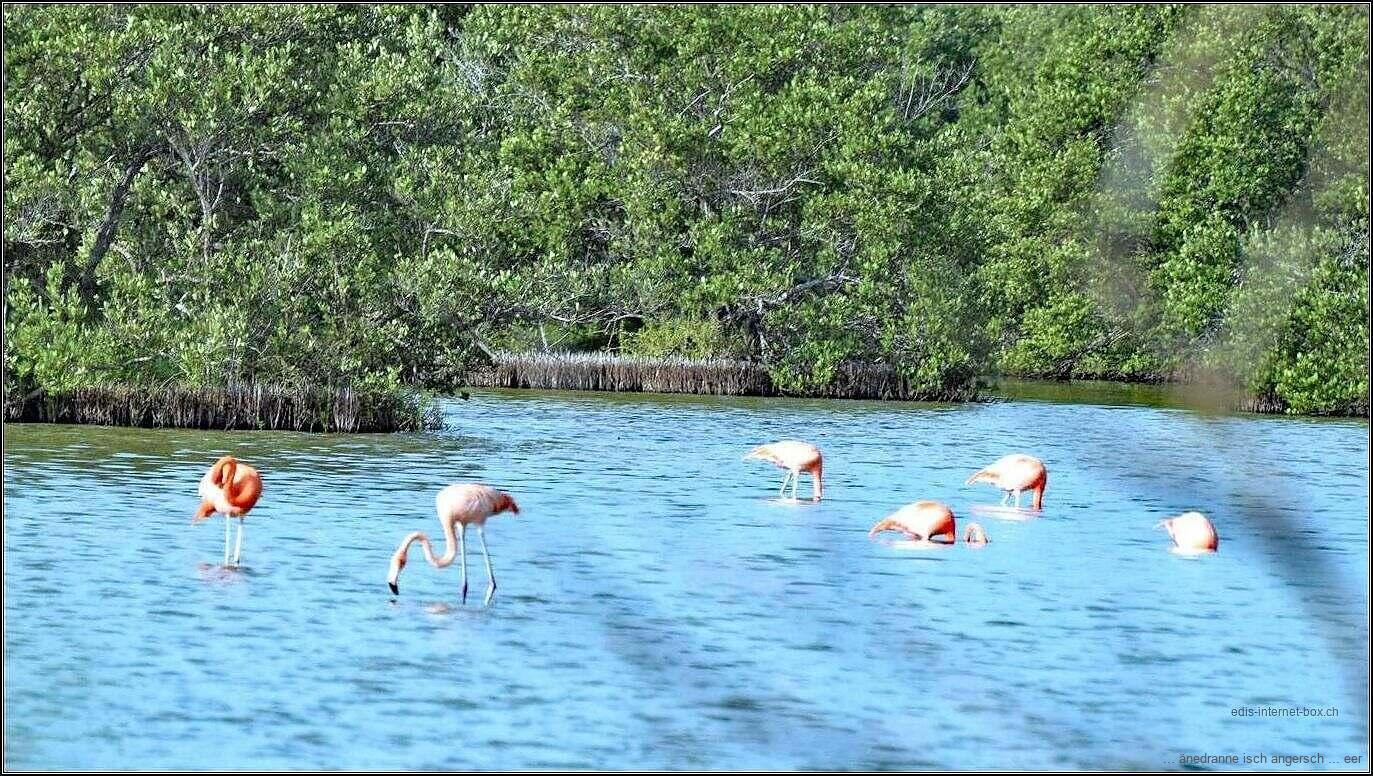 Flamimgo g’seh mer ziemli gly. Da dermit hei si die Tour o beworbe. Es wär aber vermässe, z gloube es heig Masse dervo. Mer g’seh einzelni oder Grüppeli vo Tier uf üser Tour. Chley später si de o anderi Vögel ungerwägs u mache de Fische ds Läbe suur.
