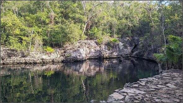 Cueva de los Peces: eine 70 m tiefen Cenote (Dolinenloch) im Landesinneren der Küstenstraße auf halber Strecke zwischen Playa Larga und Playa Girón.