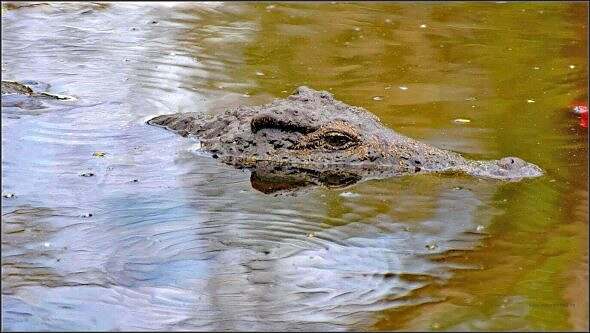 Uf die zwölfe chöme mer mit em ‚Schüttelbächer‘ – Taxi in Guama a. Mit Glück! Der Chauffeur het am Morge si Diseltank g’füllt u irgendwie isch Wasser drin g’sy. Es rucklet u stotteret, zwüschedüre stirbt der Motor ab, – aber mir chöme bi de Krokodil a. Währet mer d’d Tier luege, putzt der Chauffeur der Diselfilter.