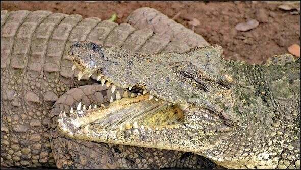 Ja, u de het es i dreine Bereiche o Krokodil. I zwöine G’heg het es ganz jungi, wo aber scho veiechli chönnte biisse. I me ganz grosse Beriich mit ere Muur drum u me See drinn, si die Usg’wachsne. Da derhinger het es no zwöi Becki mit Halbwüchsige.