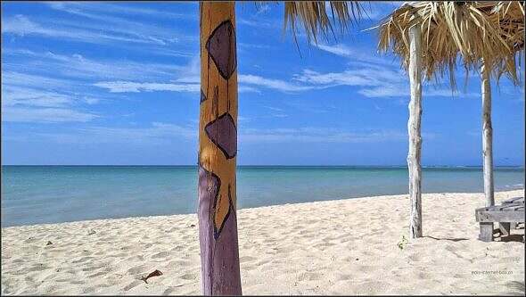 Lüt het es, aber nid übermässig. Mer si i däm Strandabschnitt fasch allei. Ds Wasser, ou we das d Karibik isch, bruucht chley Überwindig. Villicht o will d Luft so warm isch. Nu de, centimeterwys lah n i dä Eduard i ds Wasser gleite.