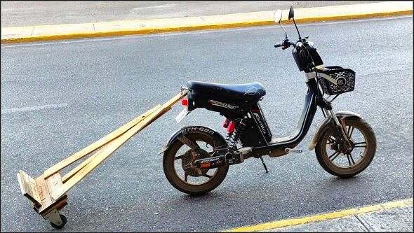 Dert stune n i, wie Kubaner erfinderisch si. E Ma bringt si Frou mit em Töffli zum Flughafe u het e patänte Koffereahänger.