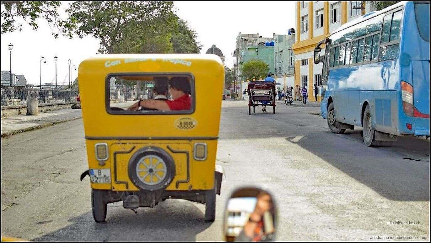 Si si zum Teil ganz arm dranne u läbe i Wohnige, wo Ruine si. U trotzdäm, hie läbt es läbesfrohs Volk. Uf de Strasse g’hört me in Havanna fasch a jedem Strasseegge Musig. Wo de Musig isch, wird o tanzet. B’bättlet wird o, aber nid übertribe ufdringlech. Derfür tüe alli alles für eim öppis z verchoufe, Krimskrams, Ässware, G’säng, aber o Dienschtleischtige jeder Art. D Täxeler si fasch die Schlimmschte.