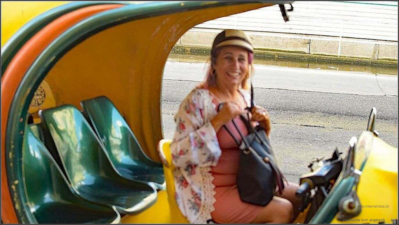 Zrügg löh mer üs vo re rasante Töff-Taxi-Fahrere lah chauffiere. Toll
