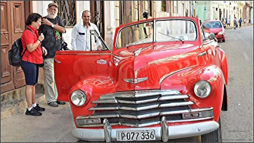 Hüt isch Programm. D Nieva holt üs am nüni im Hostel ab. Uf der Strass unger isch scho der Fahrer vo me wunderschöne, alte Chrisler u het üs d Outotüre uf. Mer mache e Rundfahrt dür d Stadt. Natürli het der Chauffeur e Route, wo bi de schöne Hüser verby füehrt. Der Verfall, die alte, wüeschte Hüser, d Ruine, d Boustelle g’seht me aber o. Es fählt a Gäld, bim Staat aber o bi de Private. Der Wille, die Altstadt z erhalte isch da. Ds Klima, d Nechi zum Meer u ds Alter vo de Hüser füehrt zu re fasch unlösbare Ufgab.
