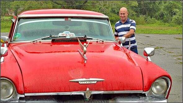 Em halbi mäldet si, dass ds Taxi da sig, – de git es churz e Juflete. Mit eme rote Plymouth isch er vorg’fahre. Es isch scho n es speziells G’füel, i däm Charre z fahre. Ds Ziel si d Indianerhöhline d Cueva del Indio. Bis dert häre isch es e Schüttelbächerfahrt. Läck het das Löcher i dere Strass. Der Räge blibt die ganzi Zyt glych.
