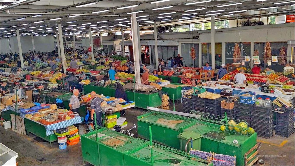 Mer fahre hüt uf Skopje. Das isch e ziemlegi Fahrt, zum Glück kenne sech Memedis us. Ig wär verlore. Mer fahre i Märit iche u chöi dert uf ere Dachterrasse, wo es Parking isch, parkiere. Vo dert loufe mer quer dür e Basar oder Märit. Ouuuu, das Guld, wo hiw verchouft wird. I stune, wieviel Lädeli Guld u Silber i der Uslag hei. Lut Gafur wird das zwar nümm als Gäldalag für d Froue ag’luegt, die junge Froue bruche ds Gäld lieber, aber d Anzahl vo de Läde zeigt, dass e Nachfrag da isch.