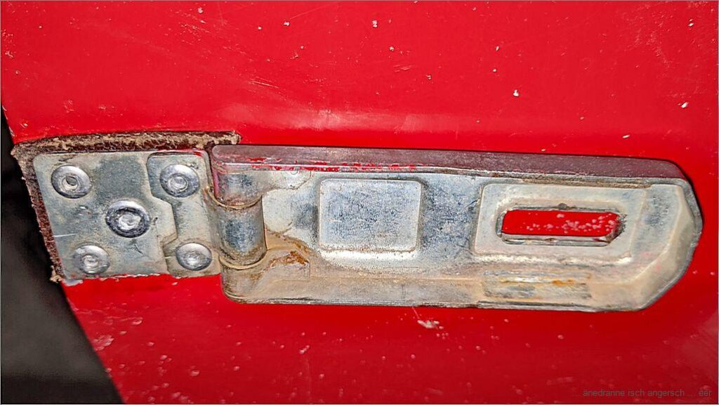 Scho lang hei mer is g’ergeret, dass me die hingeri Tür nümm rächt het chönne uftue. Ds Türschloss, d Angle, das het funktioniert. Aber Heinze het no e Diebstahlsicherig mit me Rigel u Vorhängeschloss (Hasbe).