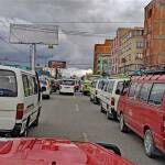 Je nächer dass mer La Paz chöme, deschto meh Hüser het es der Strass nah u o geng wie meh Outo. In La Paz geit es de nume no schrittwys vorwärts. Mängisch steit me, we me de a fahrt presche garantiert ‚Colectivos‘ vo allne Site i ne vermeintlechi Lücke. Sicher si d ‚Colectivos‘ e Teil vom Verchehrsproblem in La Paz. Nach zwöi e halb Stung, totalem Stuune ab der Grössi vo dere Stadt u no totalerem Stuune ab de Lüt i de Strasse, chöme mir i der hütige Ungerkunft a.