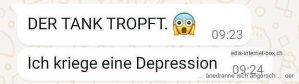 I fah a, das Brichtli schribe. Si chöme, boue der Tank i un er tropfet wieder. Es hilft nüt, dä Cheib muess me wieder lääre u usboue.