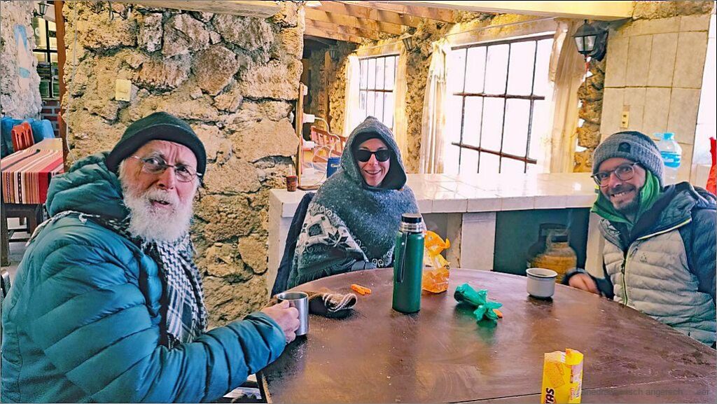 Mir si also o hüt nid nach Chile cho. Bi der Passkontrolle chöi mer übernachte, da choche mer, ja – u warte der mornderig Tag ab. Bolivie wott is no nid lah gah.