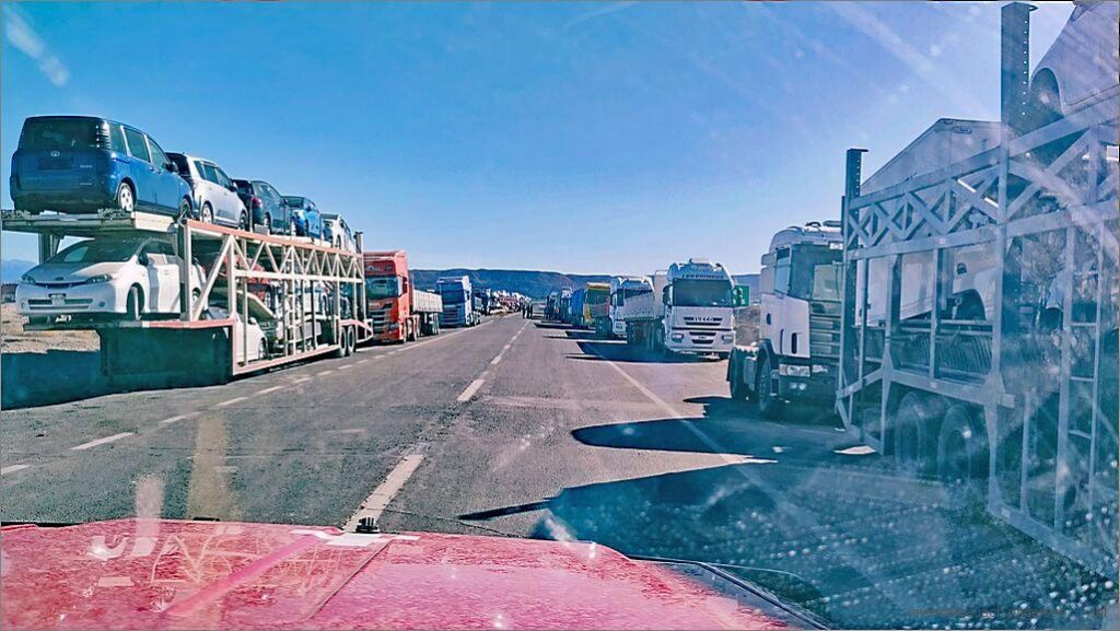 Mäntig Morge, fasch e Wuche si mer blockiert. D Bolivianer meine d Chilene heige zue tah, so im Sinn vo, mir si de nid tschuld.