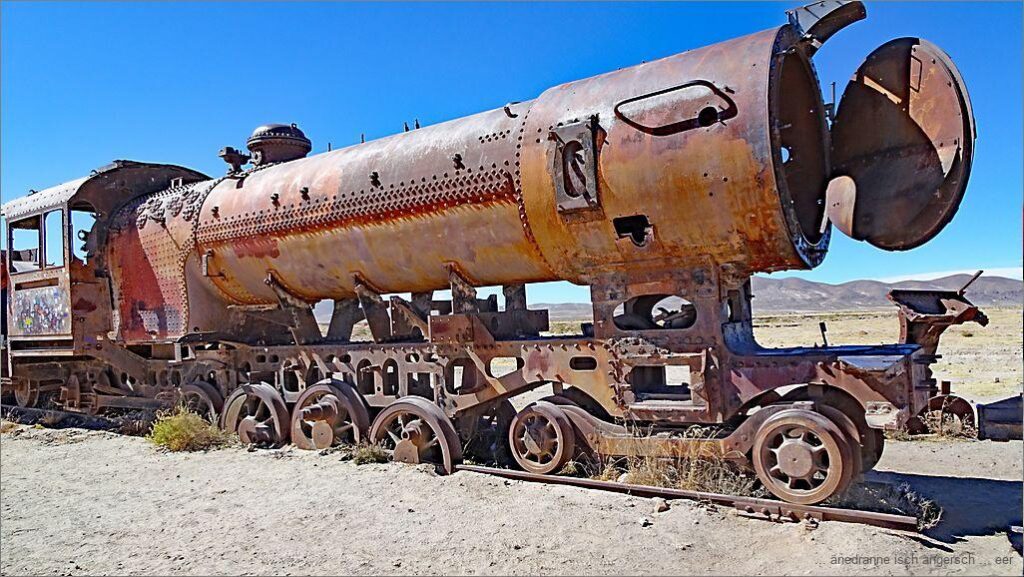 Zersch geit es zum Isebahnfriedhof vo Uyuni. Lüt, Lüt, Lüt!