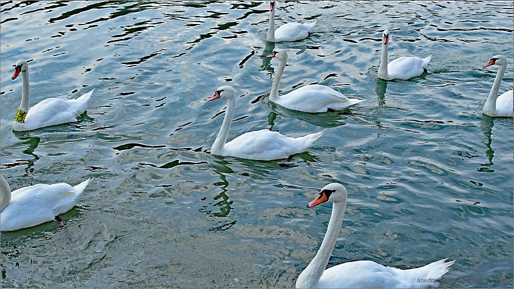 Will mer am Wasser si, blibe mer nid lang allei, d Schwanefamilie wette o öppis dervo ha. Mer si grosszügig.