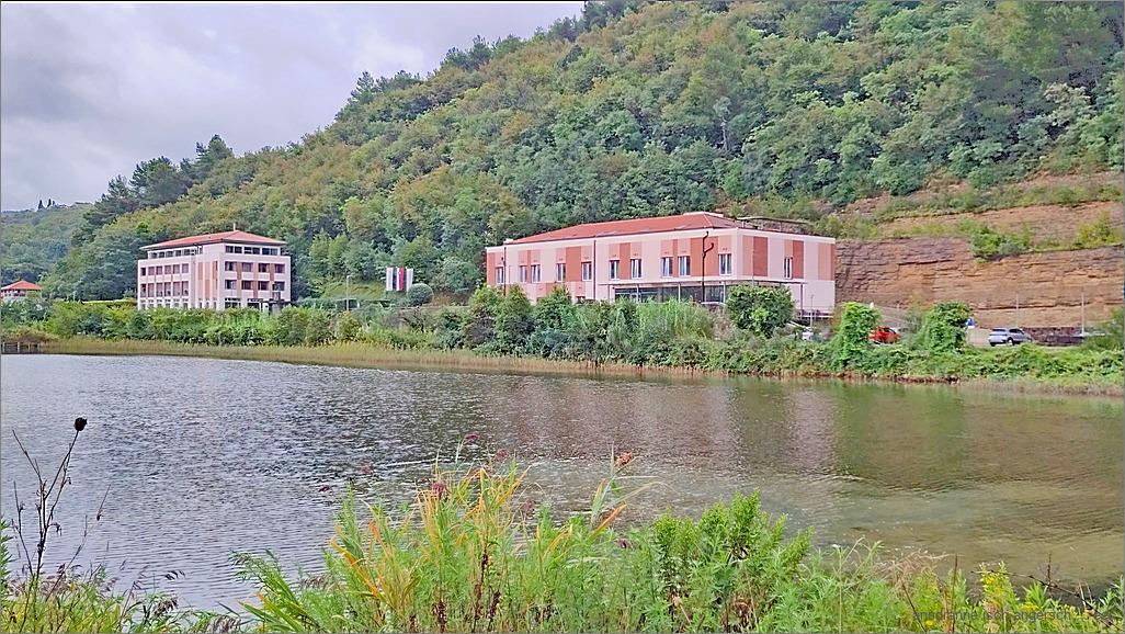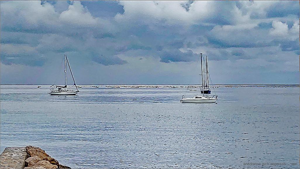 Mer richte n is im Hotäl i. Vo de Zimmer us g’seh mer uf ds Meer; – zum Hus us, über d Strass u de si mer am Wasser. Allerdings het es g’rad gägenüber alti Salzfälder, wo nümm bewirtschaftet wärde.