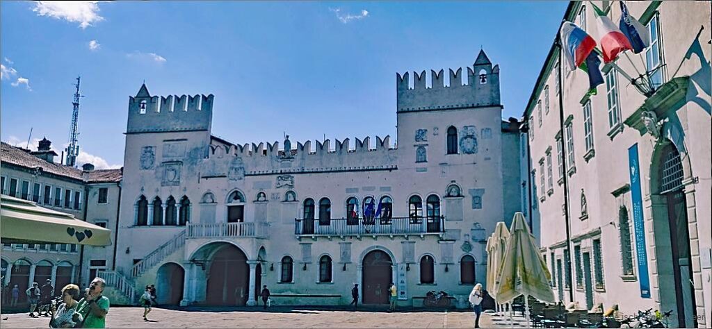 Uf der angere Site vom Platz isch der Prätorenpalascht. Das Hus, wo über Jahrhunderte um- u abb’oue worde ischisch isch berüehmt u für Slowenie wichtig. Sowohl inne, als o usse si Zügnis vo der sehr wächselvolle G’schicht vo däm Land z g’seh. Markant si die venezianische Zinne. Aber o späteri Stilrichtige si useg’hobe. Sig’s mit Relief, Büste, Statue oder Tafele, dä Palascht het vieli Merkmal.