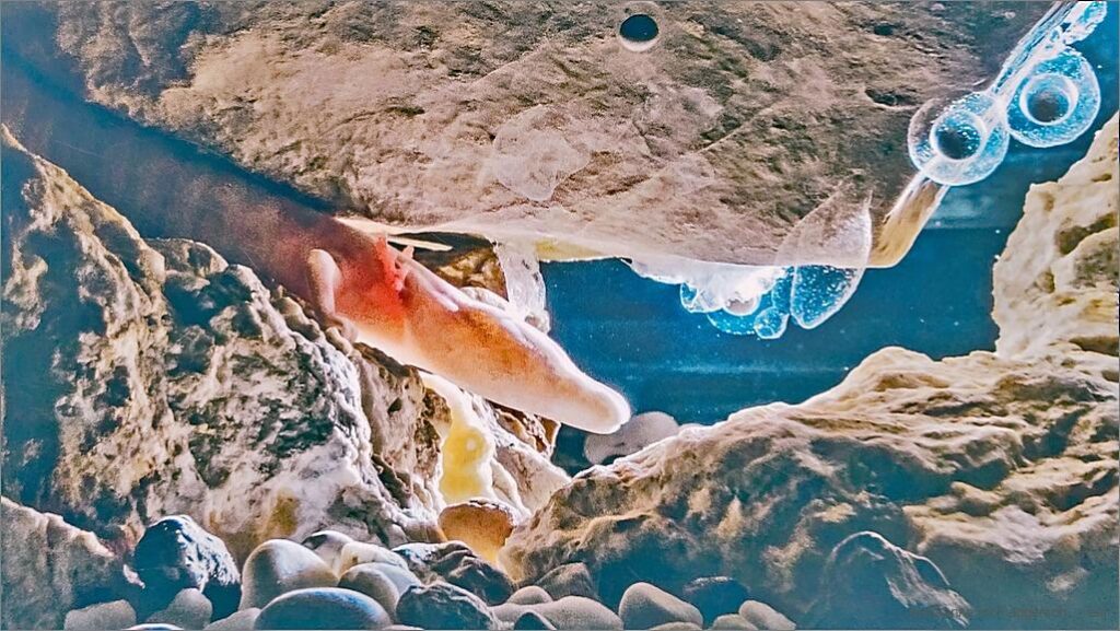 Drum ume het me e ganzi Reihe vo Sehenswürdigkeite büschelet u ufb’boue, wo touristisch vermarktet wärde. Eini dervo wär ds Vivarium. I re chlyne Näbehöhli wärde d Läbewäse vo der Postojnahöhli zeigt u beschriebe. Der gross Star hie isch äuä der Grotteolm. Im erschte Komtakt isch er wäg em Usg’seh eher unsympatisch. Je meh mer aber über ne vernäh, deschto meh achte mer ne.