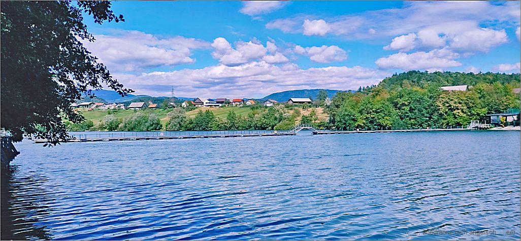 Der Šmartinsko jezero – See isch ds nächschte Ziel, wo mer is usg’suecht hei. Der Wäg vom Burghügu zum See lege mer also o pär Taxi zrügg.