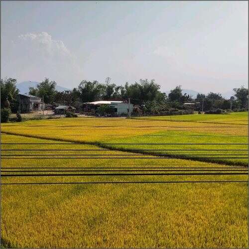 Der Riis i de Fälder wird riifer. (Im Süde vo Vietnam si pro Jahr ja drüü Ärnte mügli). Nach em ewige grüen wyter obe, isch gälb e gueti Abwächslig.