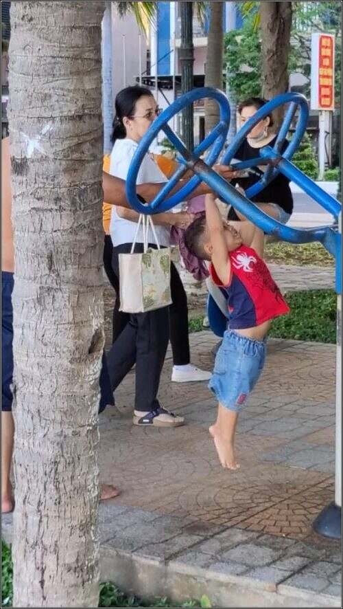 Mer loufe em Meer nah u bewundere die sportleche Vietnamese u Vietnamesinne. D Sportg’rät wo ufg’stellt si, wärde brucht.