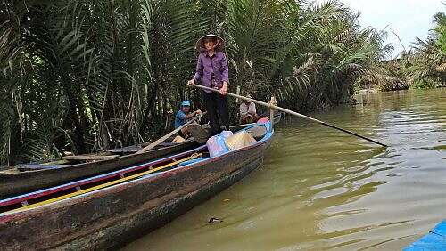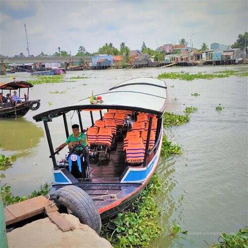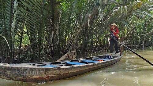 Üses hütige Programm füehrt üs wieder wäg vo Saigon, i ds Mekongdelta. Ben Tre isch es Chlynstedtli, wo alles chley g’müetlecher geit. D Wasserwäge spiele e grossi Rolle. Ds Mündigsgebiet vom Mekong schynt uf d Lüt abzfärbe.