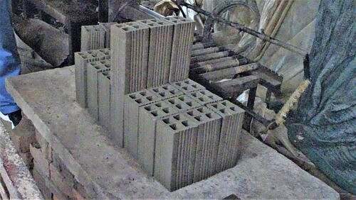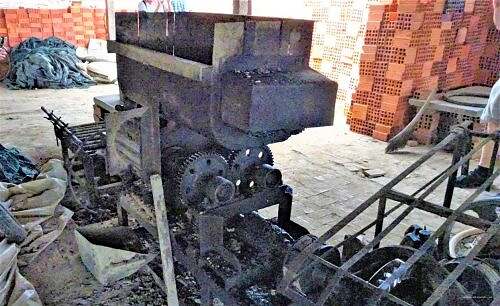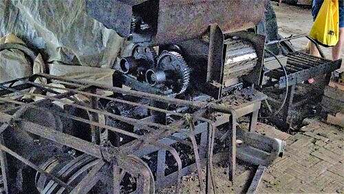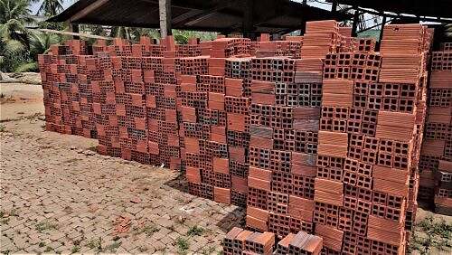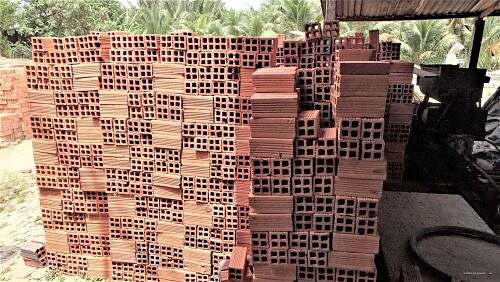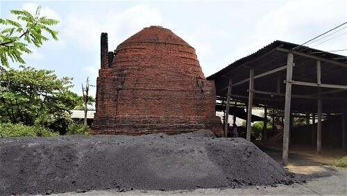 Ziegelei mit Hüfe vo Kokosschale dervor.
