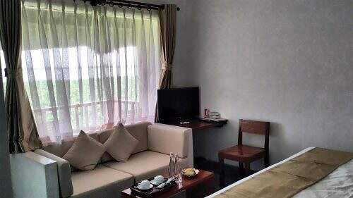 D Übernachtig im Delta isch ohni Boot nid mügli. Mer wärde i ds Mekong Riverside Resort in Cai Be b’bracht. Jedi Partei bewohnt es eiget’s Bungalow diräkt i de Seerose.