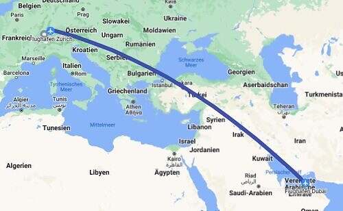 Fasch um Mitternacht Flügt de üse Flüger i Richtig Dubai ab, wo mer am früeche Morge a-chöme. Vo dert geit es de wyter bis Züri. Nachem Mittag, am Sunntig, 2. April si mer in Züri.